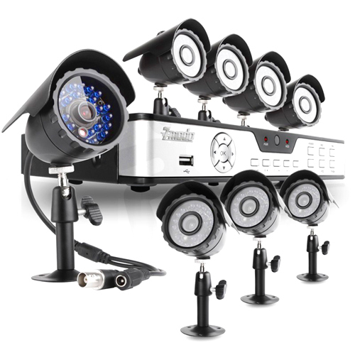 - Circuito cerrado de televisión (CCTV) de 4 u 8 cámaras exterior (sony) con DVR (grabación digital) de 4 u 8 canales simultáneos.